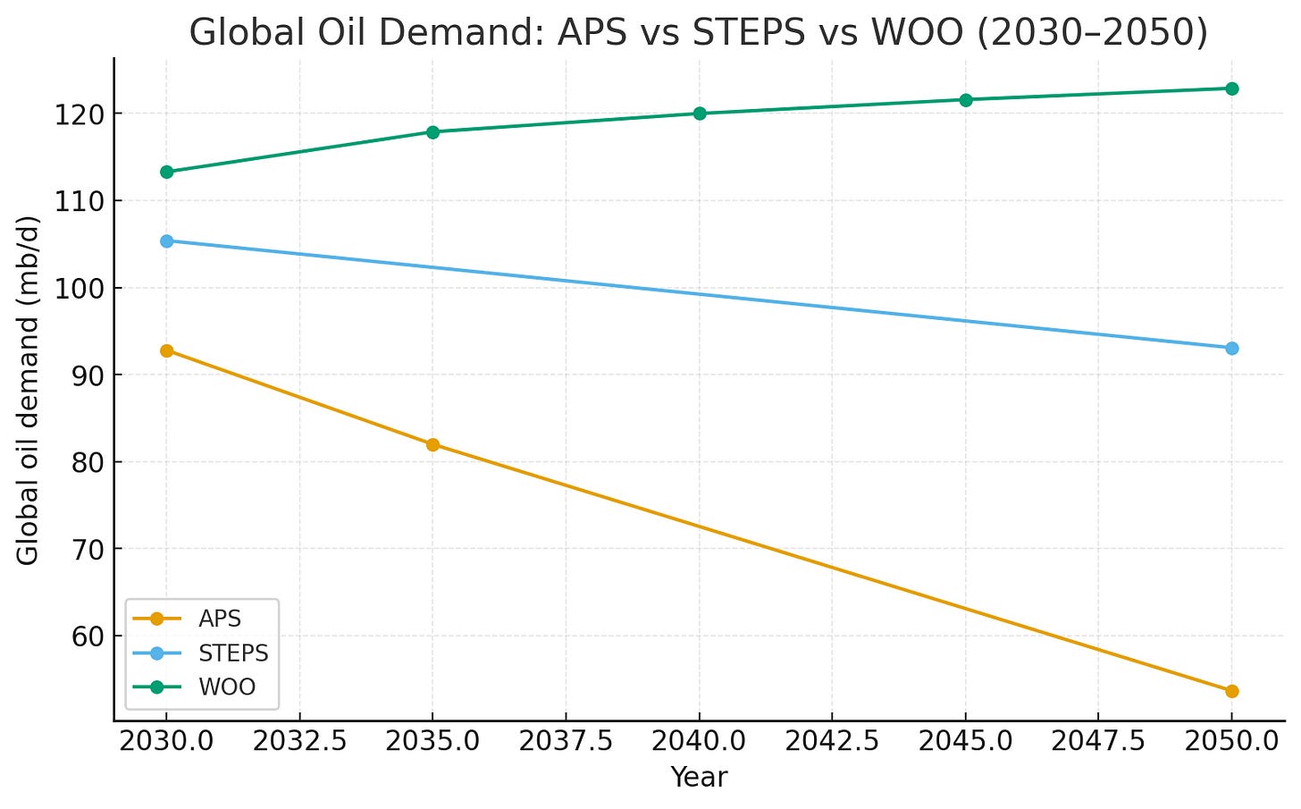 But that world depends on one assumption: oil demand keeps growing for 25 years. It neither plateaus nor declines — it grows. And that is not what current data or policy trends suggest.